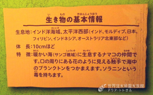 生き物の基本情報は、会場内にもありますが こちらでも紹介します。