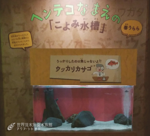 この水槽は、みなさまに少しでも多くの生き物を知ってもらいたい、また、年間パスポートをお持ちのお客様に少しでも長く企画展を楽しんでいただきたい、そんな思いで季節に応じて生き物を変え展示しています。