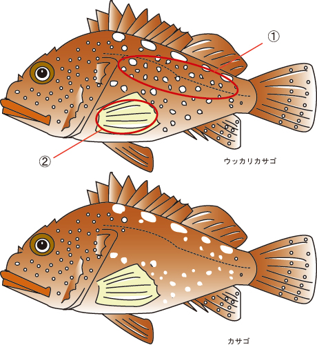 ※カサゴには側線付近に白い斑点がないか、斑点があっても縁取りがない