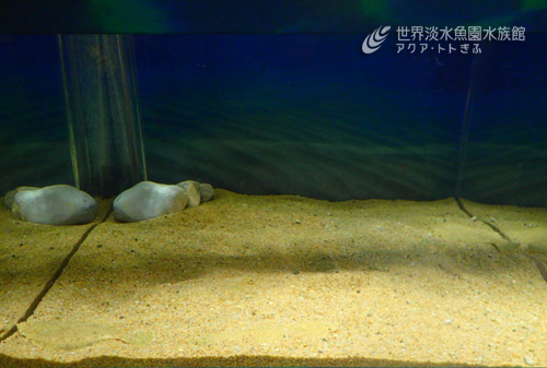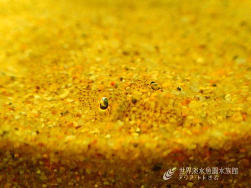 小さな石に見えなくもないですが、水槽の中をのぞくと、キョロキョロと周りを見回していることも多いので是非、静かに動いているヒラメたちの目を探してみてくださいね!!!