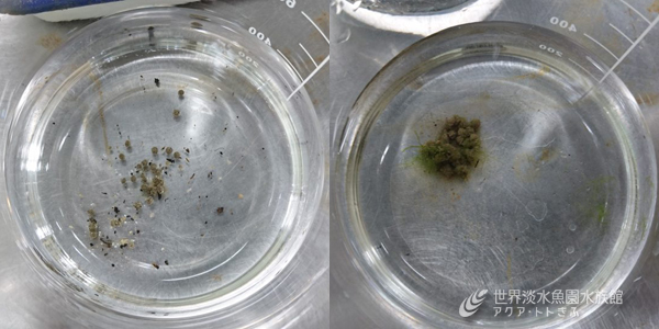 ある日、エサをあげようと水槽内を確認したところ、泥にまみれた丸い粒々のものがパッと視界に飛び込んできました。