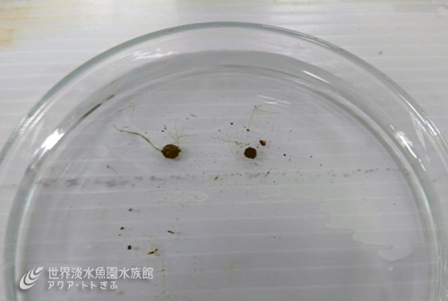 産卵された卵をこのまま水槽内に置いておいても育つことは昨年確認できましたが、成長過程を観察するために一部の卵を回収して育てています。