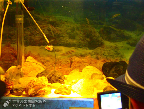 アマモ水槽は、いっせいに生き物たちがエサを食べだすのでスタッフも食らい付いて見入ってしまいます。