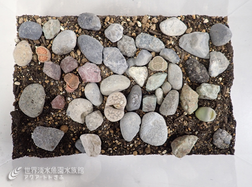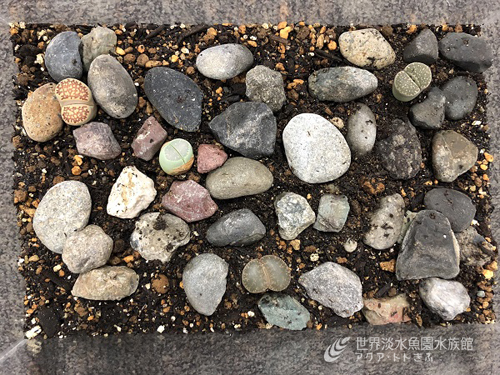 リトープスの仲間で食害から逃れるために、石に擬態しています。