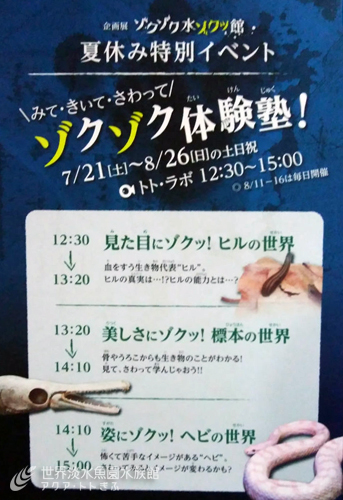 まだまだこれだけではなく、スペシャルナイトツアー「夜も水ゾクッ館」や、アクア・スクール「もっとゾクゾク水ゾクッ館」、ものづくりワークショップなど、企画展特別イベントも開催します。