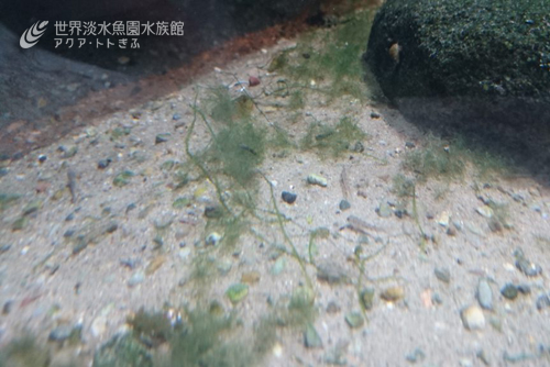 居場所さえわかってしまえば、見つけるのはたやすいかもしれませんが、この水槽の中にいるという前提で見なければ、なかなか見つけるのも難しく、周りの風景にも同化しています。