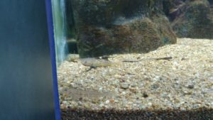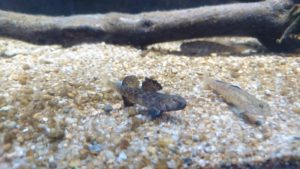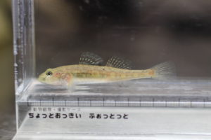 こちらの水槽で展示していますが、12月くらいから繁殖行動の見られるメスに黒っぽい婚姻色がでます。