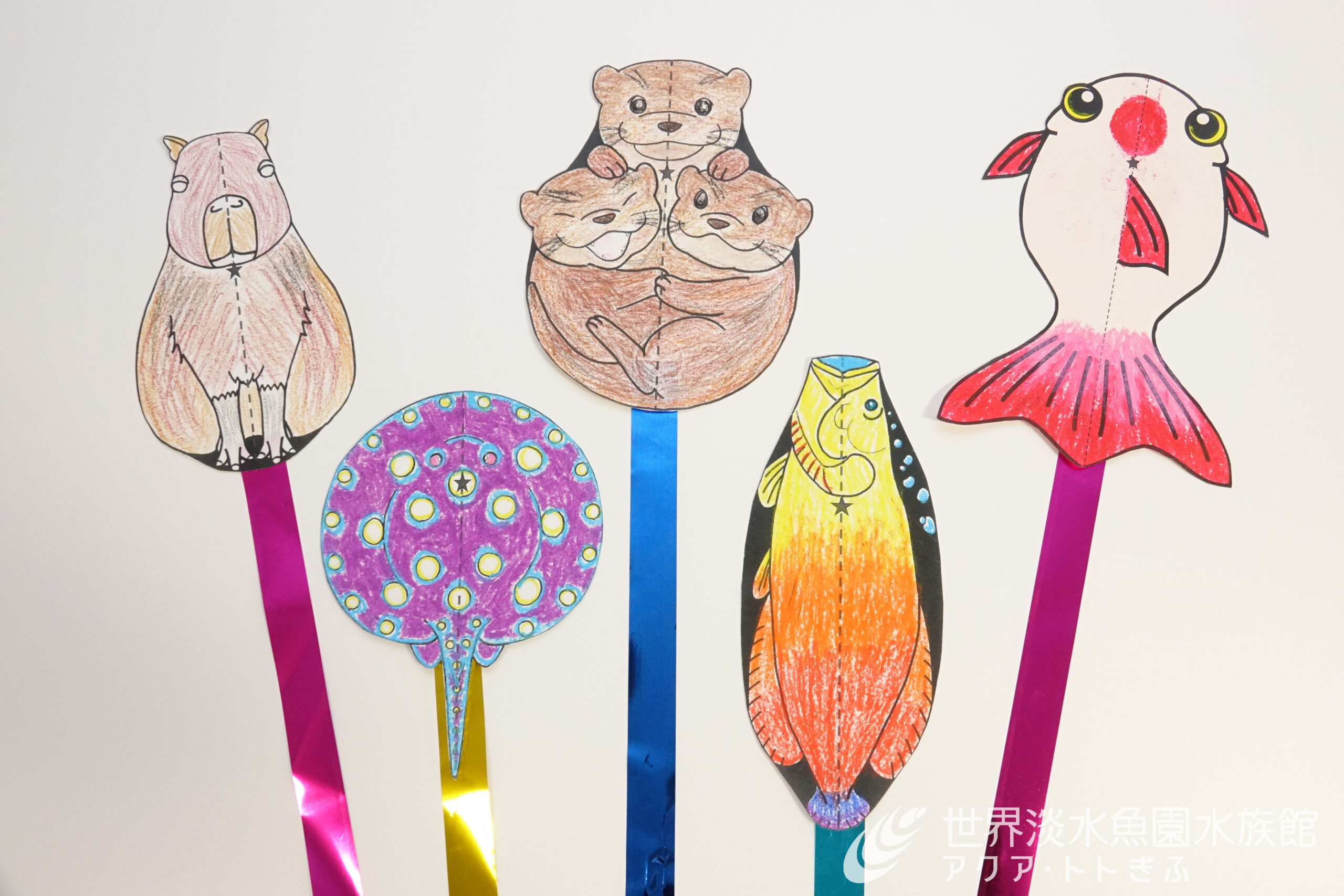水辺の生き物をモチーフに、オリジナルの凧をつくります。