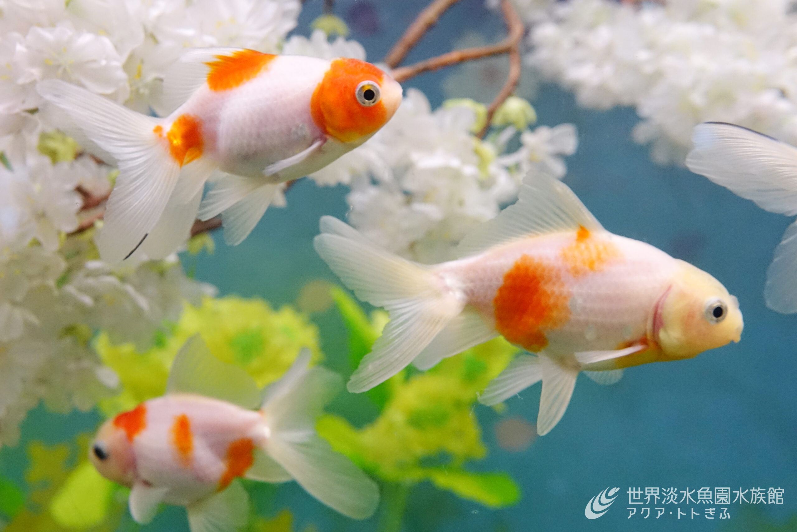 水槽では、桜の名がつく金魚たちをご覧いただけます。