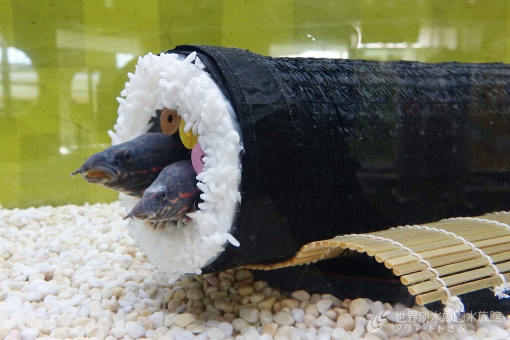 アクア・トト ぎふでは、先月からエントランスにてニホンウナギの恵方巻を展示しています。