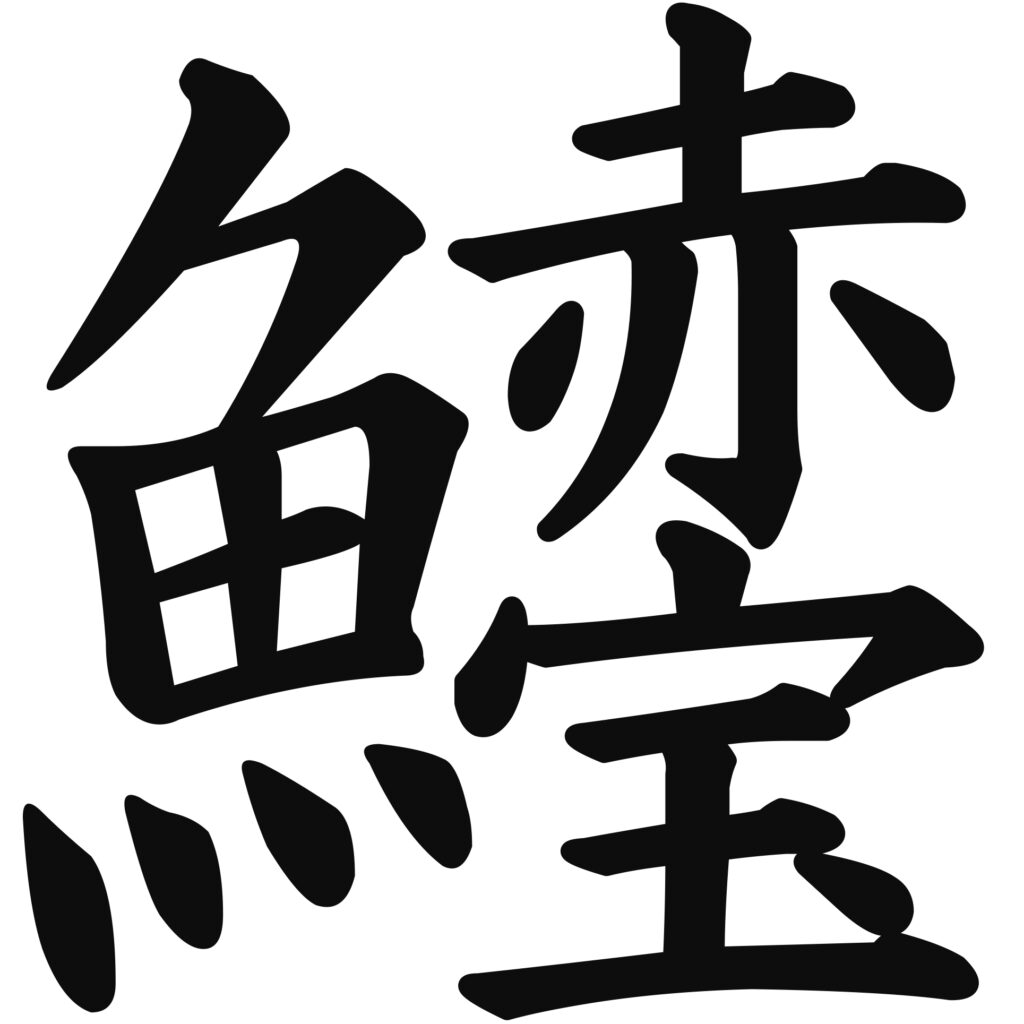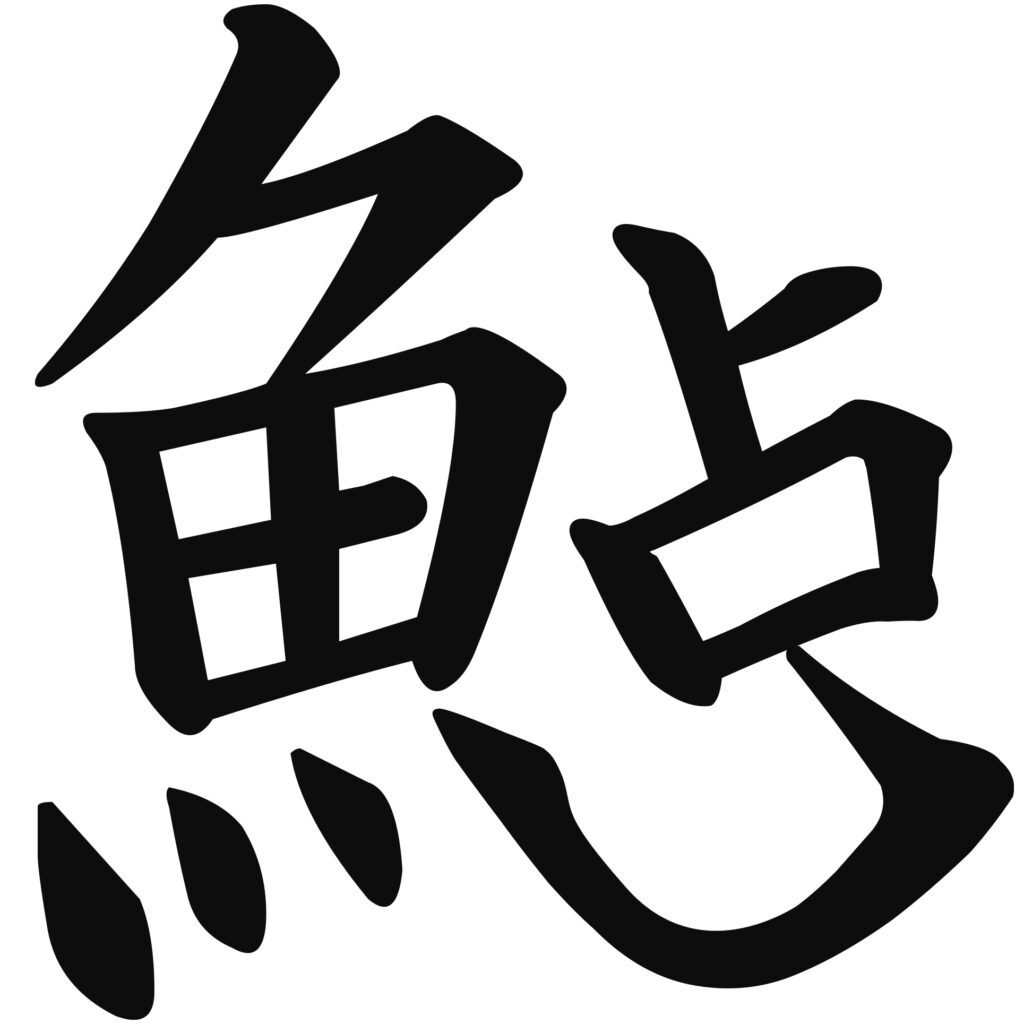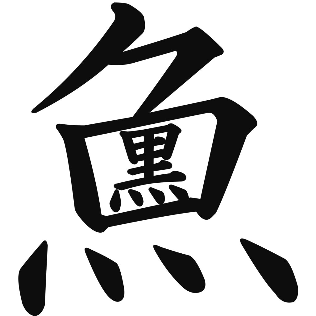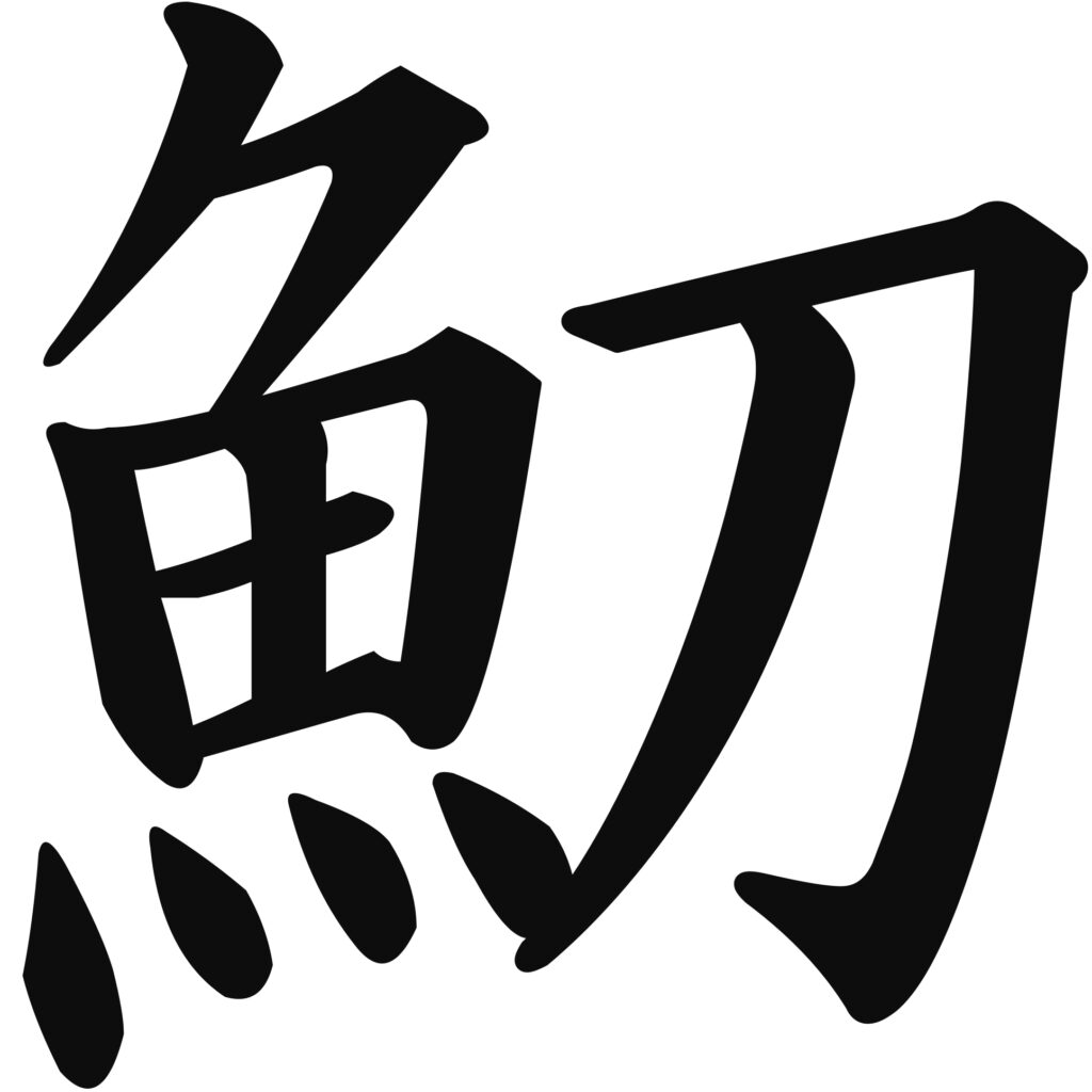魚の漢字の尾びれを表す部分を鋏にしました。